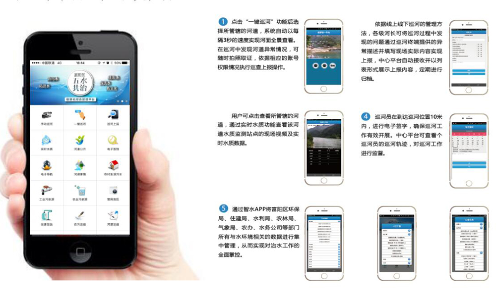 項(xiàng)目?jī)?nèi)容:富陽(yáng)區(qū)“五水共治”信息化綜合管理平臺(tái)由河長(zhǎng)管理、五水監(jiān)控、富陽(yáng)治水APP三個(gè)系統(tǒng)組成,將全區(qū)工業(yè)污水、農(nóng)業(yè)面源污染、農(nóng)村生活污水、城市污水泵站、河道水質(zhì)、山塘水庫(kù)、防洪堤壩、排澇站、水文站及城市供水管網(wǎng)、節(jié)水項(xiàng)目等全部納入統(tǒng)一的智能實(shí)時(shí)監(jiān)控,開啟“互聯(lián)網(wǎng)+治水”的新模式。